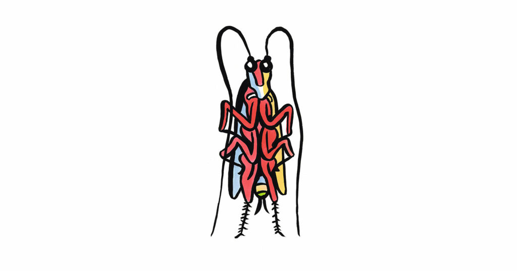 A mulher acendeu a luz da cozinha e deparou-se com a besta do Apocalipse. Desesperada, ela pegou o inseticida na despensa e iniciou a perseguição. O bicho inominável correu em direção à porta da sala. A mulher foi atrás e lançou o jato venenoso, cobrindo o ambiente com uma névoa esbranquiçada. Mas a criatura desapareceu sem deixar rastro.