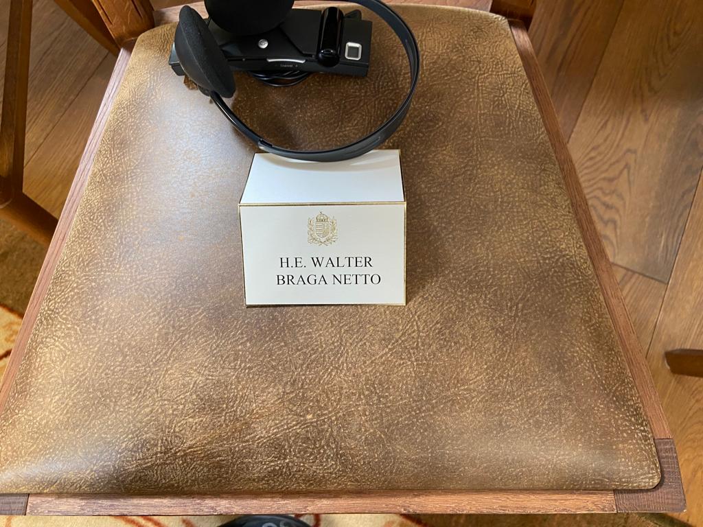 No encontro, apenas ministros, diplomatas e militares tinham lugar previsto, caso do ministro da Defesa, Walter Braga Netto. Carlos Bolsonaro não tinha lugar marcado, mas acabou ocupando a cadeira de um diplomata.