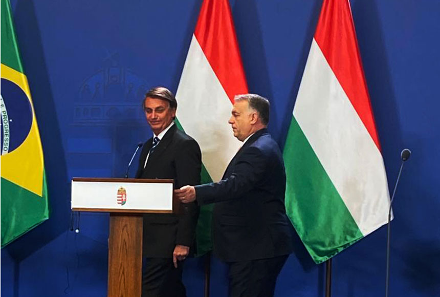 Bolsonaro e Orbán entraram na sala trocando sorrisos.