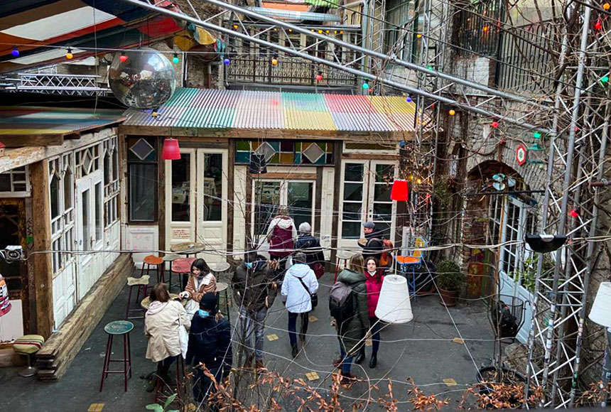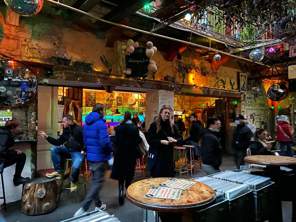 Este é o Party District, o bairro boêmio da cidade, cheio de bares e sinagogas. É lá também que ficam os principais bares de ruínas, como o Szimpla e o Kisuzem.