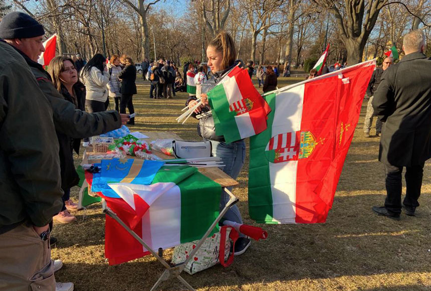 Nos treze dias que passei em Budapeste, vi duas manifestações de extrema direita. Uma delas (abaixo) era promovida pelo partido Mi Hazánk, cujos integrantes usavam uniformes de corte militar e portavam estandartes com a cruz de Santo Estêvão, o padroeiro da Hungria.