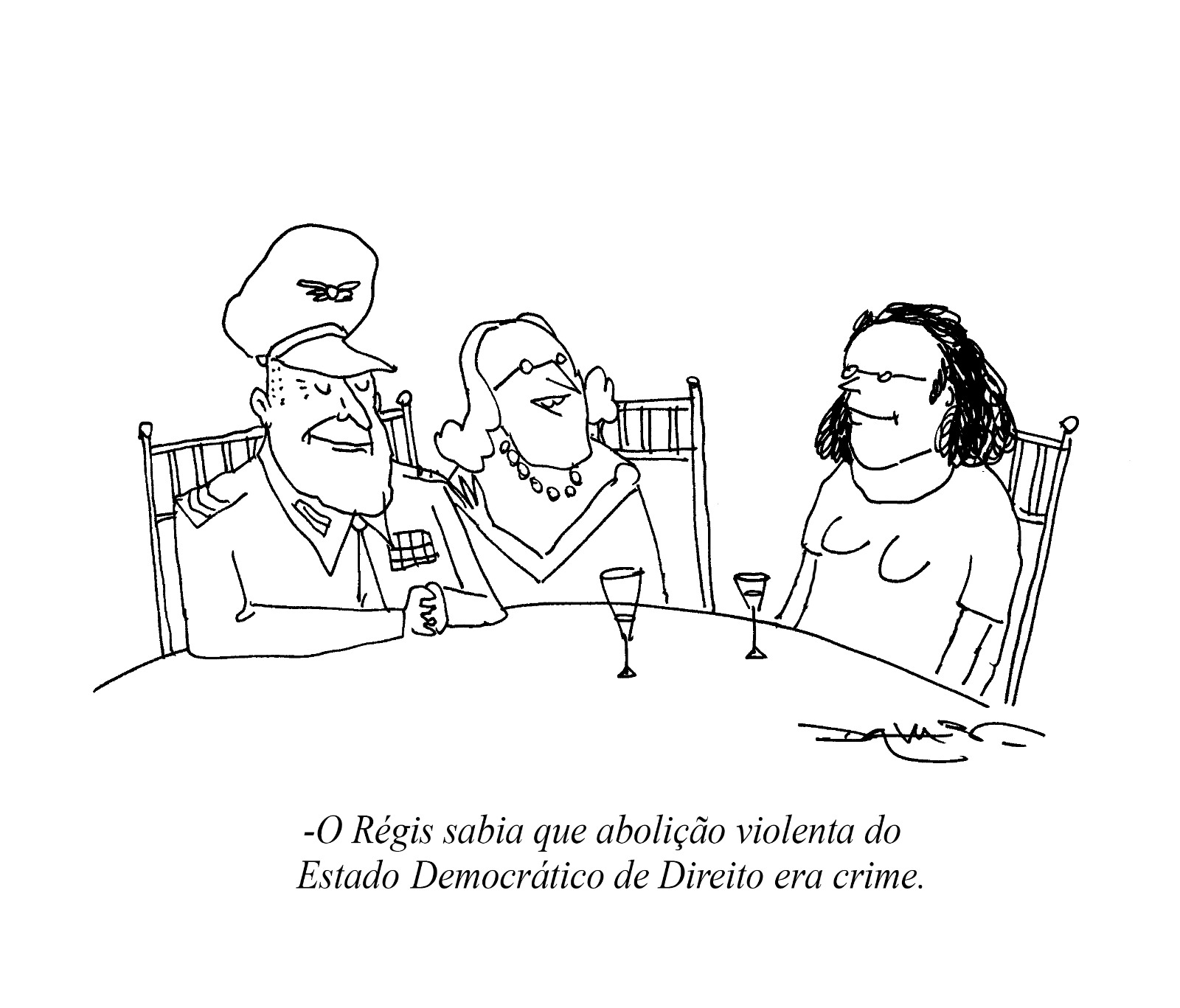 Pela primeira vez desde sabe Deus quando, generais brasileiros estão tendo pesadelos com a prisão. Dos 37 indiciados pela tentativa de golpe, 25 são militares (Bolsonaro incluso). Dos 25 militares, sete são oficiais-generais. A fina flor das Forças Armadas. Em uma série de cartuns na piauí, a vida imaginada desse esquadrão atrás das grades e outras cenas do golpe fracassado: